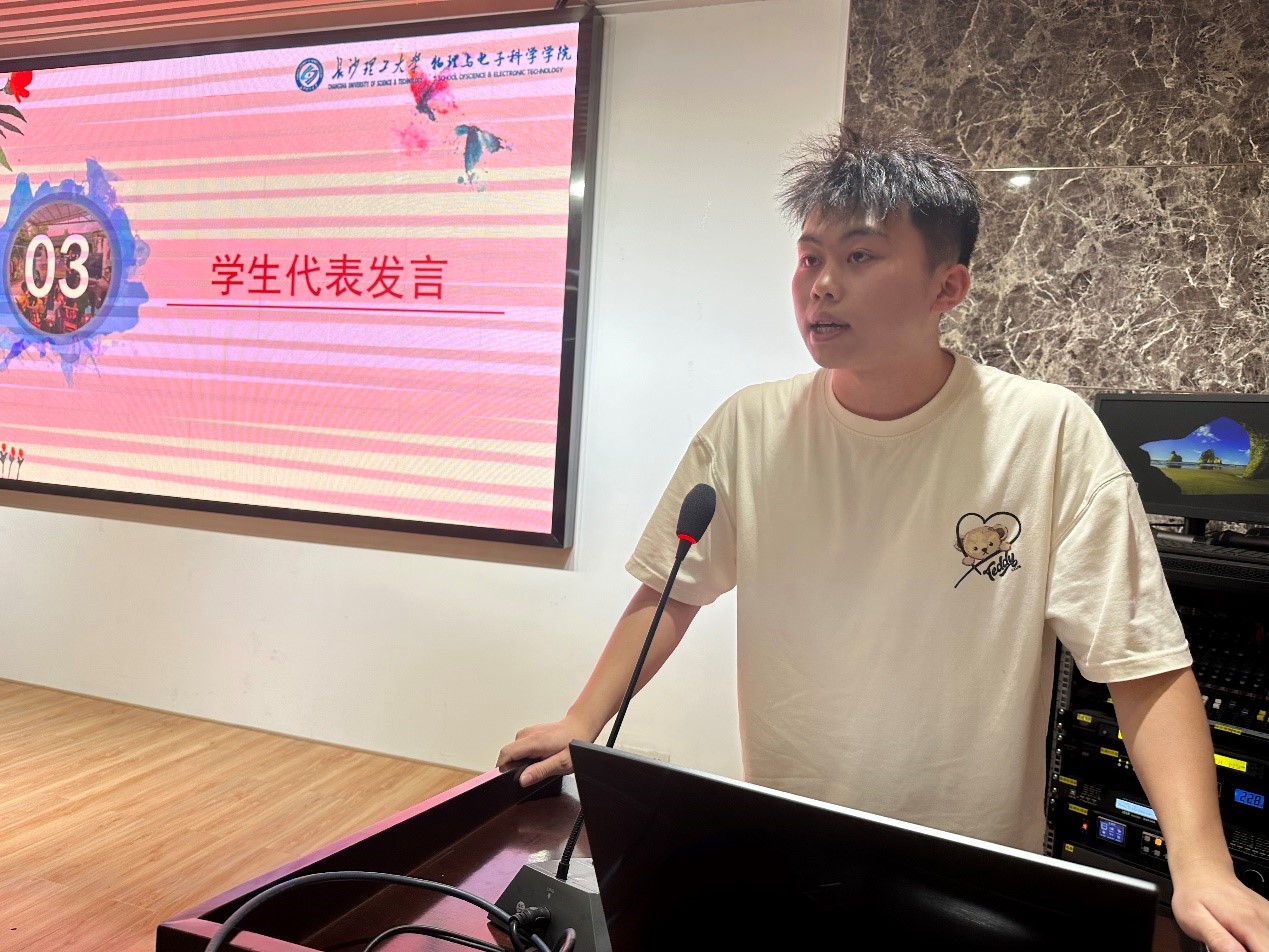 之后,两位学生代表电信2301班何旭和人智2302班侯智凯发言,他们表示,通过参与暑期社会实践,不仅能提高自己的团队协作能力和沟通能力,还能深刻感受到社会的发展变化和人民群众的需求,更加明确了自己的责任和使命,对本次暑期社会实践充满期待。