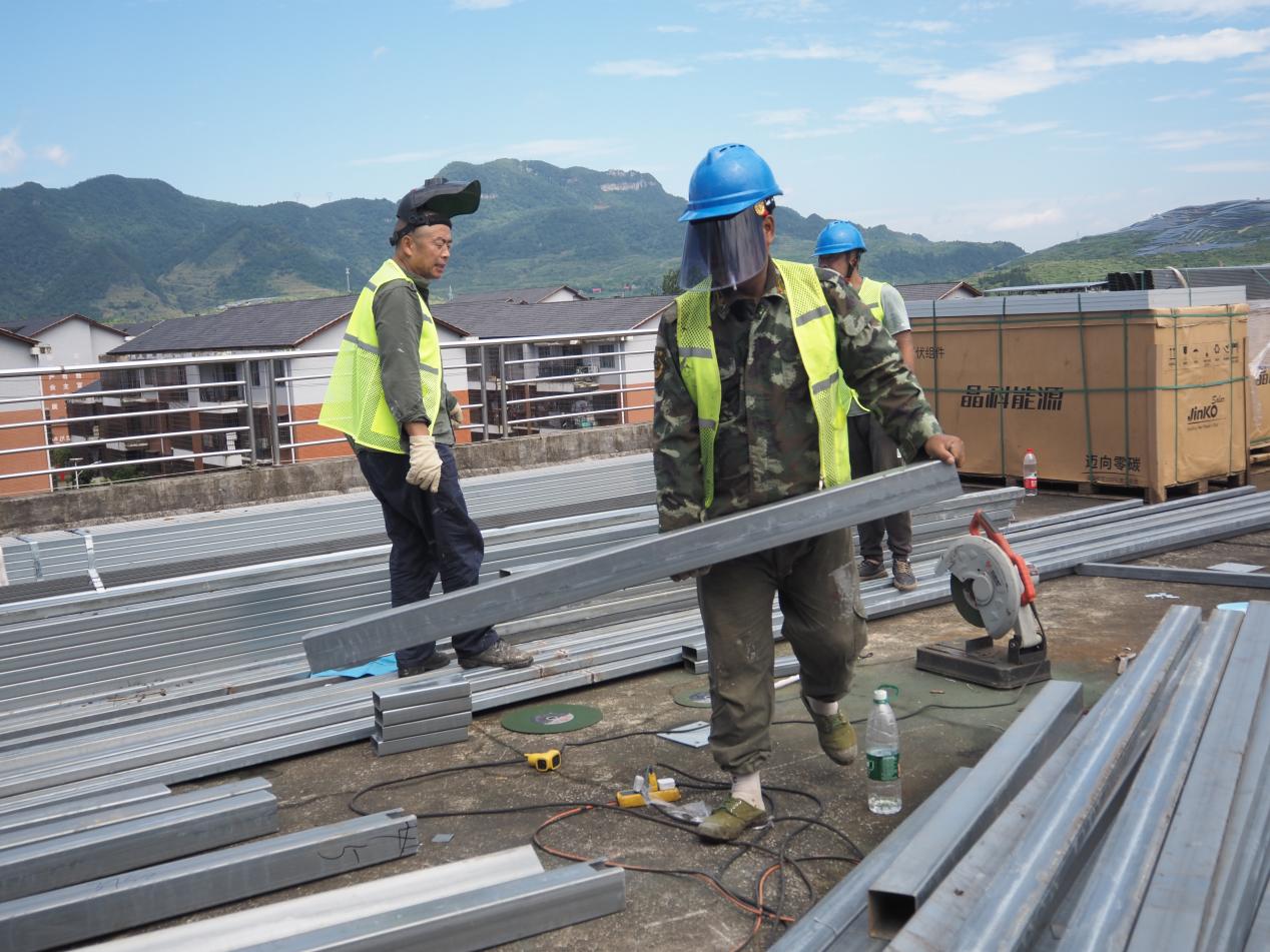为更深入了解光伏建设情况,实践团成员顶着烈日来到曹家镇曹家村的施工现场,向施工人员了解光伏建设难点以及当地光伏覆盖情况。在采访中调研团成员了解到,目前在乡村分布式光伏的建设速度较快,每个屋顶的光伏铺设周期仅为七个工作日,同时在建设完成后,电网、供电局都会给予光伏并网很大的支持,村集体和村民都能从中收获经济利益。