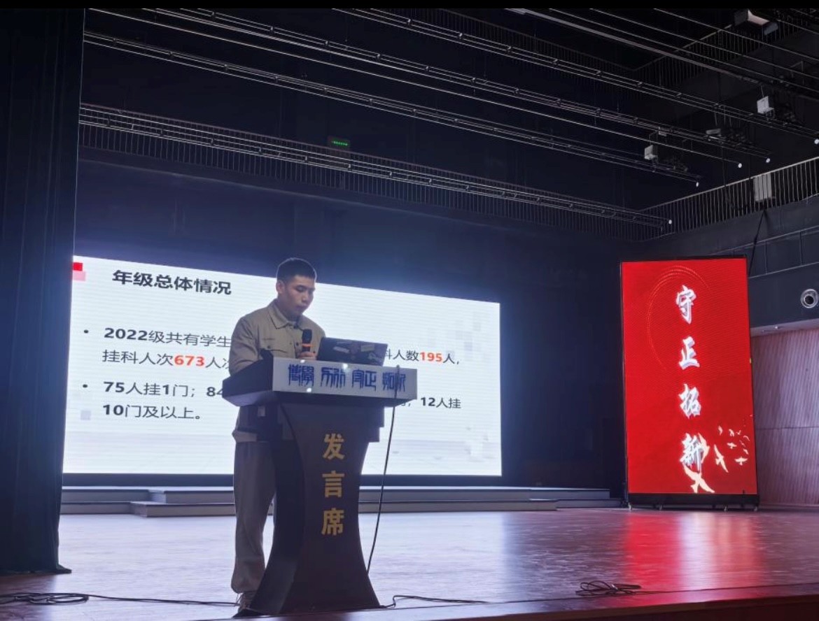 各年级辅导员回顾了上学期年级的学业情况,肯定了同学们在学业成绩、学科竞赛、文体活动等方面取得的进步,同时,也重点提醒学生的挂科情况,四六级备考进度以及安全纪律问题,并对学生提出新的期望。24级年级辅导员郭晨鑫指出学习要注重课程系统性,制定学习计划,善于利用学术资源,积极参与科研活动、竞赛项目。23级辅导员马凯文勉励学生应把握大学黄金时期,明确自身发展方向,丰富自身履历。22级年级辅导员姚巍鼓励同学们树立远大理想,珍惜大学时光,努力提升综合素质。
