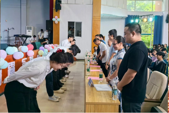 典礼在一段精心制作的大学生涯回顾视频中拉开帷幕。视频里,课堂上激烈的思辨场景、实验室中攻坚克难的专注神情,以及校园活动里洋溢的青春活力,一帧帧画面如电影般闪过,勾起了毕业生们无数美好的回忆。随后,各班班长怀着感恩之心,向班主任与导师代表鞠躬致谢,现场温情涌动。毕业生班主任代表吴丽娟老师深情致辞,她回忆起学生们初入校园时的青涩模样,到在专业实践中逐渐蜕变、独当一面的成长历程,言语间满是欣慰与不舍。吴老师叮嘱学子们,未来无论身处何方,都要“调整心态、终身学习、健康生活”,并暖心承诺“母校永远是你们的港湾”,这番肺腑之言令不少学生红了眼眶。