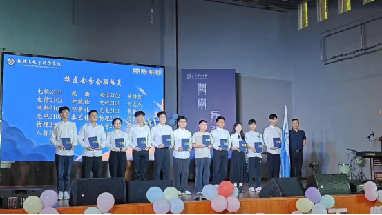 文艺表演环节更是将典礼氛围推向高潮。毕业生们用才艺展示着青春的风采与力量:大合唱《凤凰花开的路口》,饱含着对往昔岁月的眷恋与对未来的憧憬,同学们的歌声里带着淡淡的忧伤与坚定的信念;舞蹈《Bubble》节奏动感,舞者们活力四射,瞬间点燃现场气氛;中国舞《入画江南》则以水墨般的意境,将离别之情演绎得诗意满满。毕业生辅导员赵俊程老师带领的单片机乐队压轴登场,一曲《海阔天空》,将全场氛围烘托得温馨而热烈,也象征着毕业生们即将勇敢地奔赴广阔天地,追逐自己的梦想。