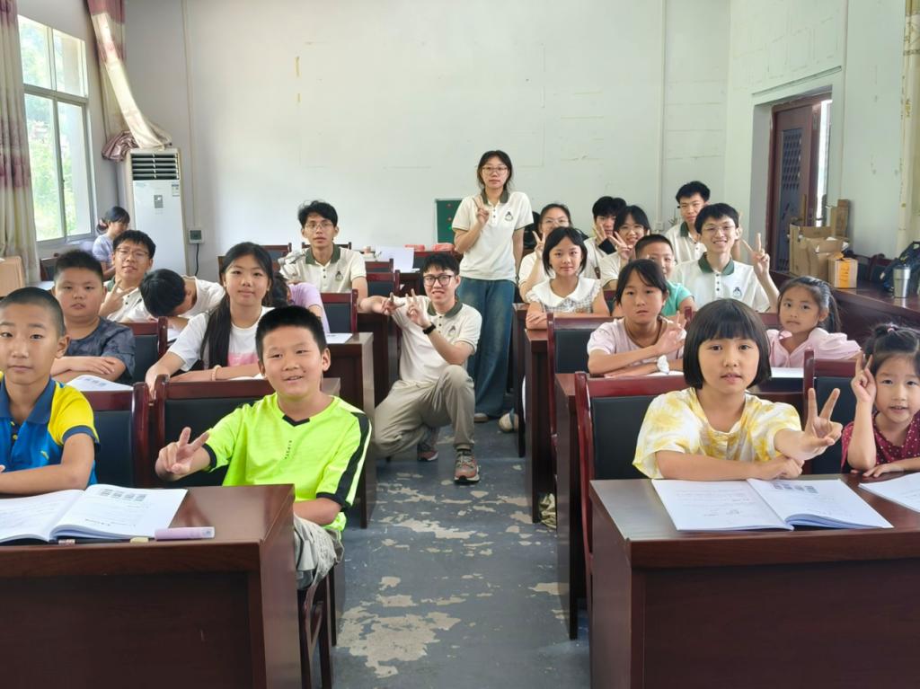 桑植县走马坪村地处山区,溇水支流穿境,夏季溪流水位上涨、水流湍急,对当地儿童构成溺水隐患。“照片里的池塘水面清澈,能随意下去游泳吗?”实践团成员张华清以桑植县溇水的照片为例问小朋友。“不能!”一位小朋友大声回答道,“野外的水里有暗流,会把人冲走的。”张华清用彩图讲解 “六不准”“四牢记”安全准则,通过快问快答、顺口溜加深印象,还示范仰漂、踩水等自救法,教孩子用树枝、空水瓶等物品展开智慧救援,孩子们学得认真,互相纠正动作。