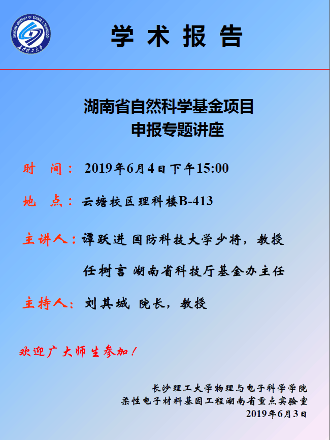学术报告预告——湖南省自然科学基金项目申报专题讲座