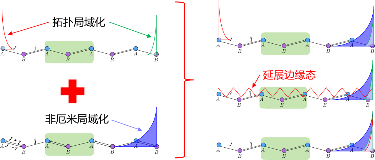 拓扑局域化与非厄米局域化在非厄米晶体系统中的相互作用,导致拓扑边缘态呈现出多样化的形态分布,这为调控边缘态以实现潜在拓扑应用提供了契机。传统拓扑不变量计算无法提供边缘态波函数的详细信息,而精确表征边缘态作用域并实现其调控恰恰需要这些信息。论文通过将边缘态看做为特征方程的特定解,推导出扩展型非厄米SSH模型中边缘态的波函数,进而逆向构建了可同时表征边缘态存在性及其空间分布的绕数元组。此外,论文定义了等效的谱绕数,该量由不同能带能量的乘积决定。这种拓扑不变量的逆向设计方法,使得即使在缺乏子晶格对称性的系统中也能对边缘态的局域特性进行分类,这将显著促进不同量子材料与器件研发中边缘态的调控与利用。
