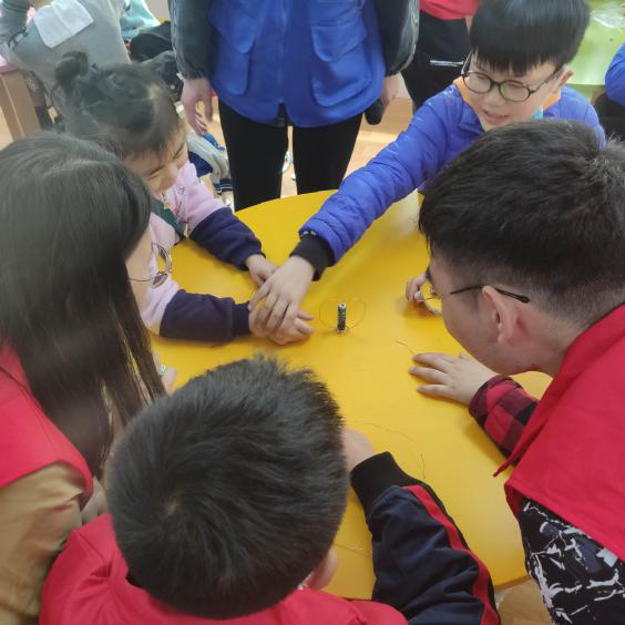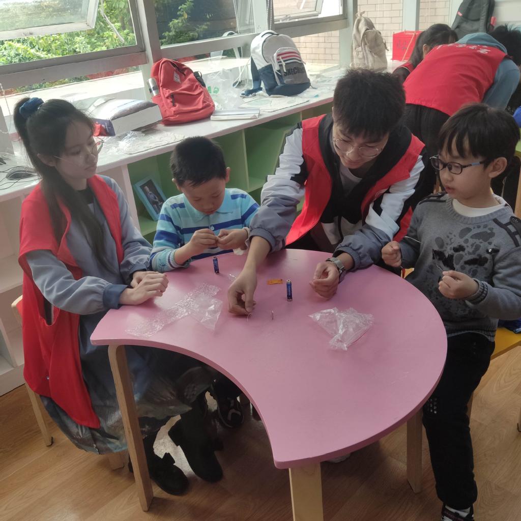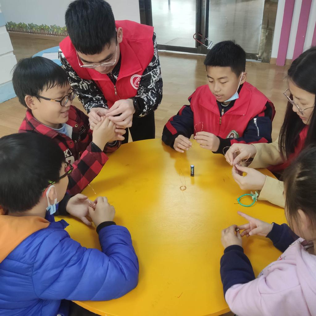 328日物电学院“小小科学家”团队进行了本学年第一次线下科普活动。本次活动共计10名志愿者参与,共有16名小朋友,分为四组,每组4人今天实验主题为旋转的铜线圈,第组的志愿者早早的就开始准备各种实验器材与活动场地。志愿者先为大家讲解了此次实验的目的,然后进行了实验操作示范,在操作过程中掺杂讲解让小朋友们更加理解操作步骤,然后引导小朋友手动完成实验,最后志愿者讲解了此次实验的实验原理。