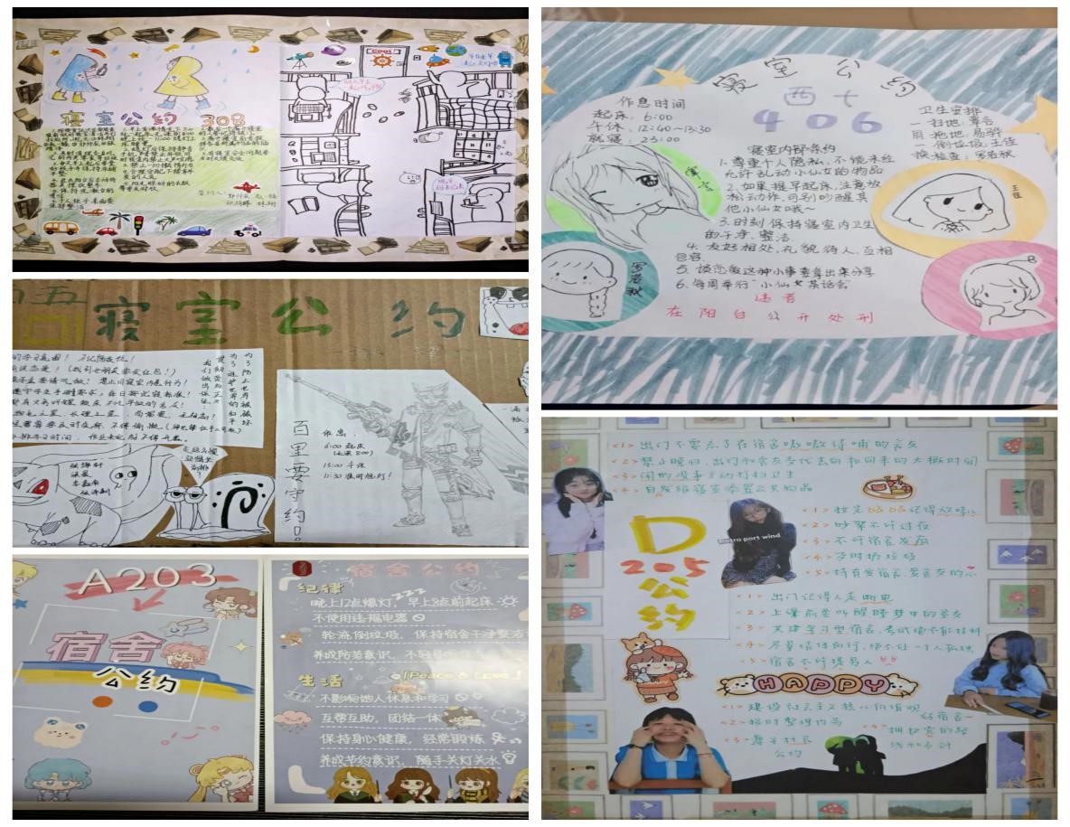 在比赛期间,同学们积极参与,各寝室展开热烈的讨论,根据作息安排、卫生维护、行为规范等多个版块设计制定公约。参赛作品形式多种多样,内容详实丰富,充分展现了物电学子非凡的创造力与积极向上的精神风貌。