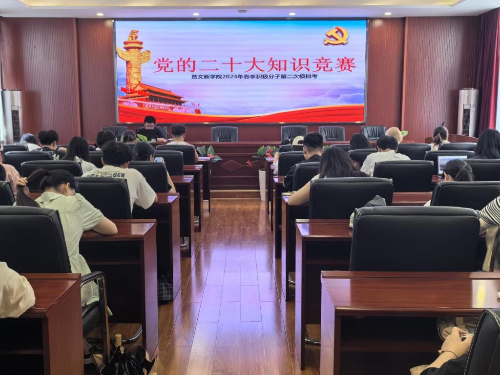 为贯彻落实党的二十大精神,积极探索“党建+互联网”新模式,进一步提升积极分子的理论知识水平,5月27日12时10分,“党的二十大知识竞赛暨文新学院2024年春季入党积极分子第二次模拟考试”于开云官网金盆岭校区九号教学楼218室、223室成功举行。