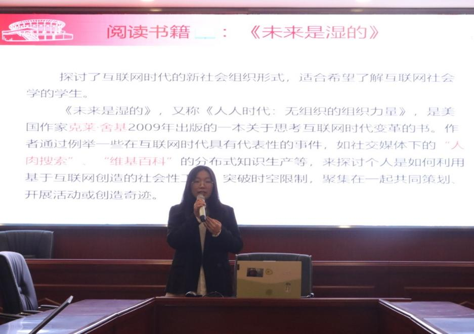活动伊始,主持人程对本期阅读书籍《未来是湿的》进行了简单介绍。接着,黄星海、冀美灵、蒋雨恬三位同学围绕该书籍分享了自己的思考与感悟。如无组织的组织对社会治理的影响需要辩证看待、饭圈文化对于建构网络社会的影响以及如何厘清无组织的组织力量和“乌合之众”的边界等。