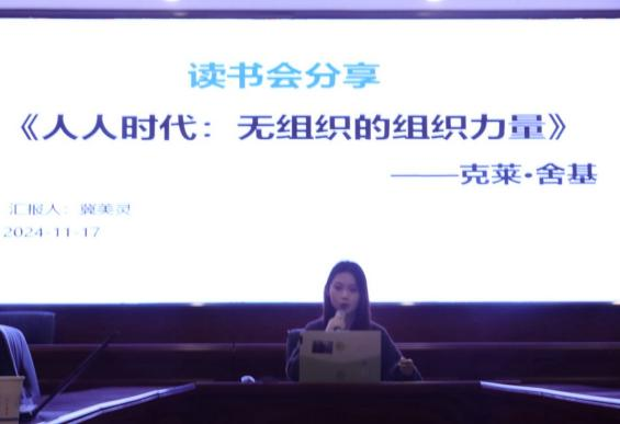 11月17日晚,第三期金岭读书会“悦读经典”系列活动在开云官网金盆岭校区9教218教室顺利举办。此次活动以“无组织的组织力量在数智时代下的机遇与挑战”为主题。文学与新闻传播学院副院长戴钰、赵继光主任出席,陈一点老师点评,前央视主持人、瑞士国家电视台法语主播褚笑为特邀嘉宾24级新闻班黄星海、冀美灵、蒋雨恬三位同学进行汇报分享,程主持,24级新闻班全体研究生参与此次活动。