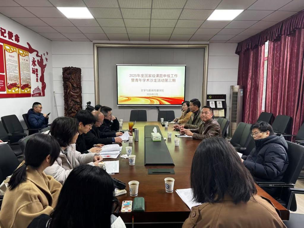 2025年2月21日下午,学院特邀湖南师范大学燕道成教授莅临学院,就国家社科基金申报工作进行选题论证指导。院长刘建新、院党委副书记(主持工作)李娜、副院长戴钰等领导,以及国家级社科基金项目申报人参加沙龙。此次活动旨在提升学院教师科研项目申报质量,助力学科建设与学术创新。