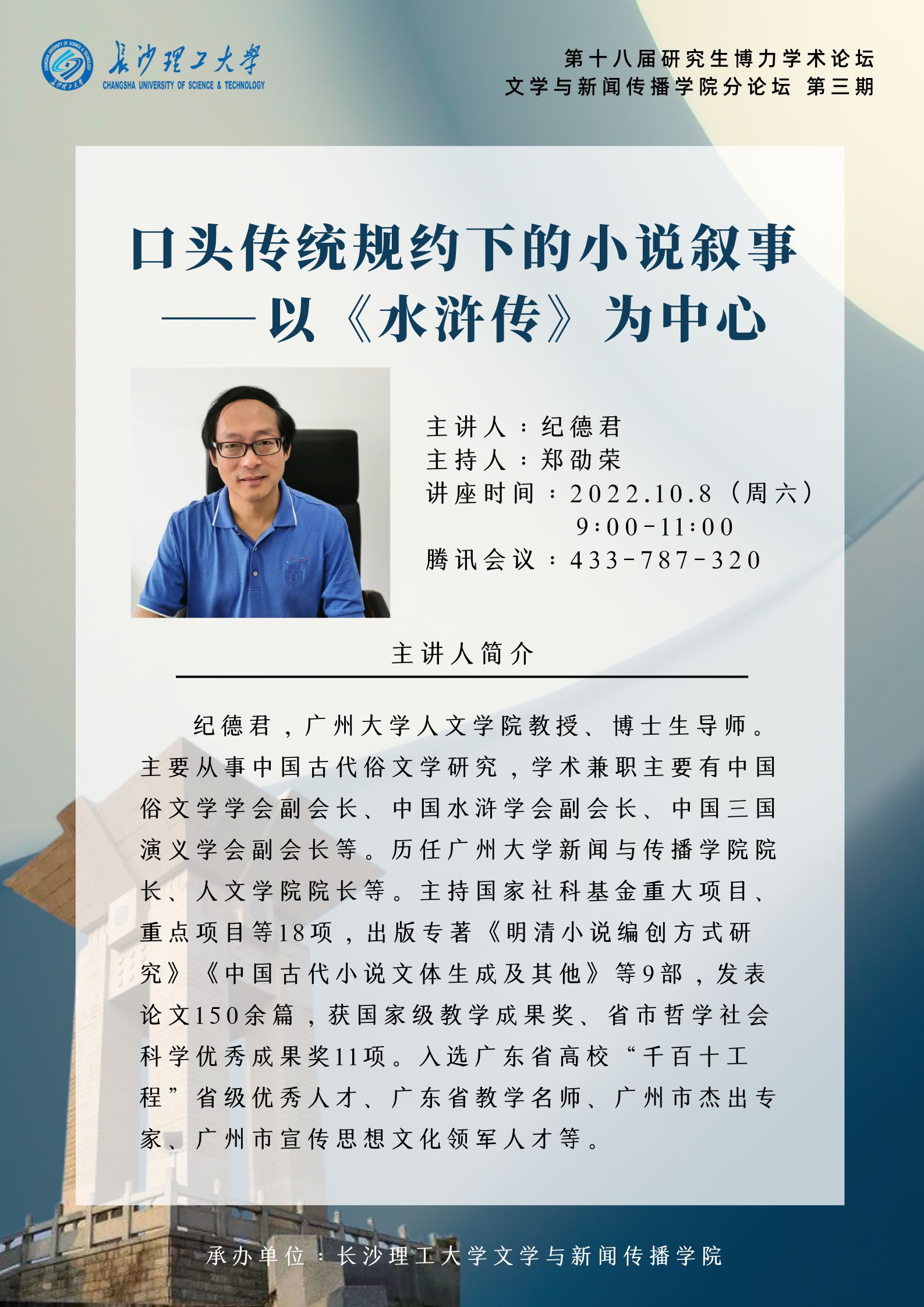 讲座内容:《口头传统规约下的小说叙事——以<水浒传>为中心》