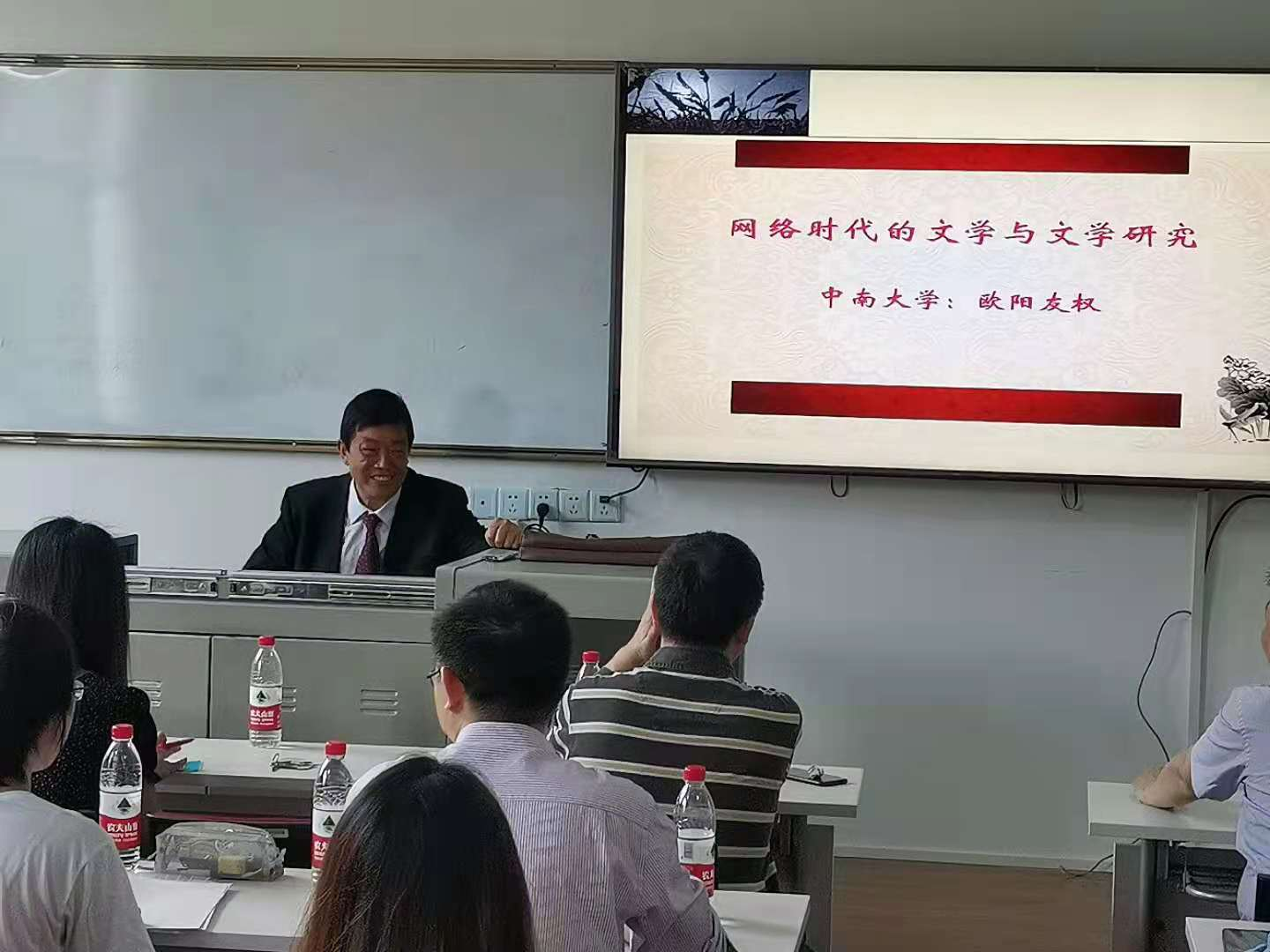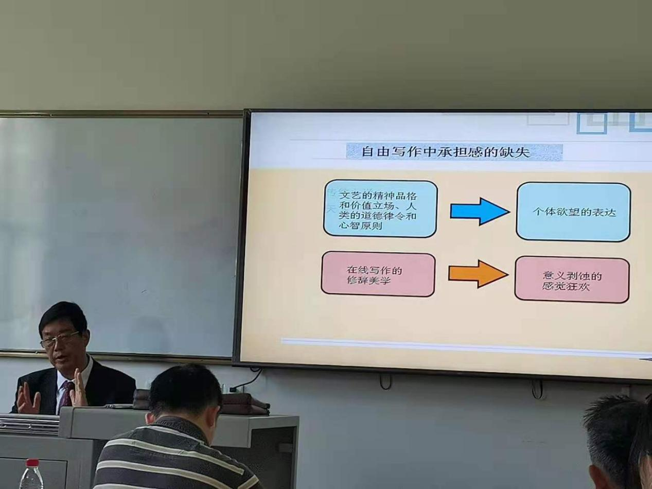 2021年5月8号早上9点于金盆岭校区7教303,中南大学欧阳友权教授莅临开云官网,做了题为《网络时代的文学与文学研究》的学术讲座,讲座由易彬教授主持,文新学院副院长周云鹏教授、宁淑华教授、郑劭荣教授等老师与19、20级全体中文研究生参加了讲座。