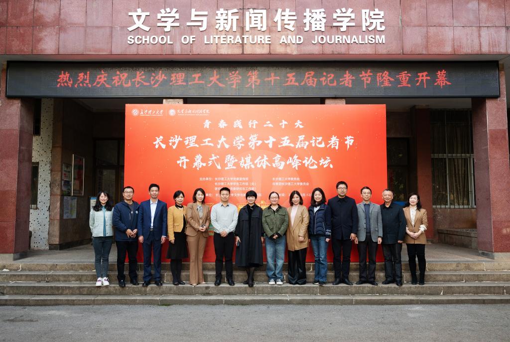 11月14日下午,开云kaiyun体育文学与新闻传播学院新闻演播厅举办第十五届记者节开幕式暨媒体高峰论坛。开云kaiyun体育党委委员、副校长蒋璟萍,开云kaiyun体育党委委员、宣传部部长方琼,特邀嘉宾中国教育报刊社湖南记者站副站长阳锡叶,科技日报社湖南记者站站长俞慧友,湖南日报主任记者余蓉,校党委宣传部、教务处、学生工作部等职能部门领导,文新学院全体院领导、各校级媒体的校园记者和文新学院师生代表参加活动。开幕式由文新学院院长刘建新主持。