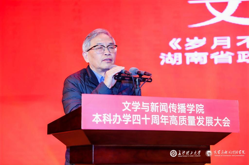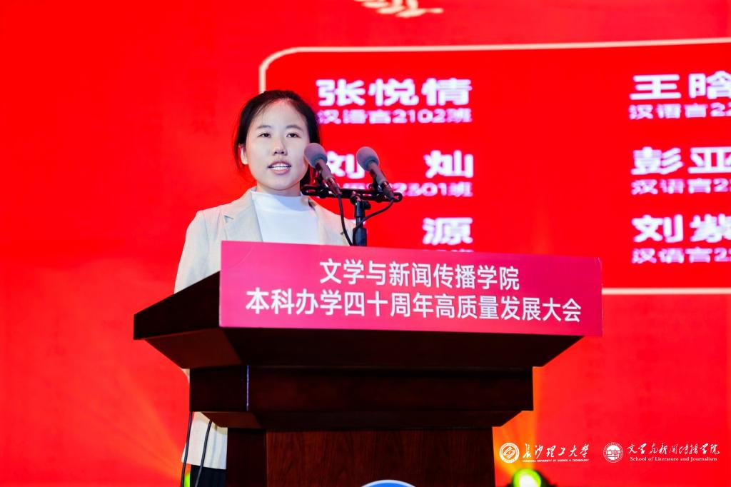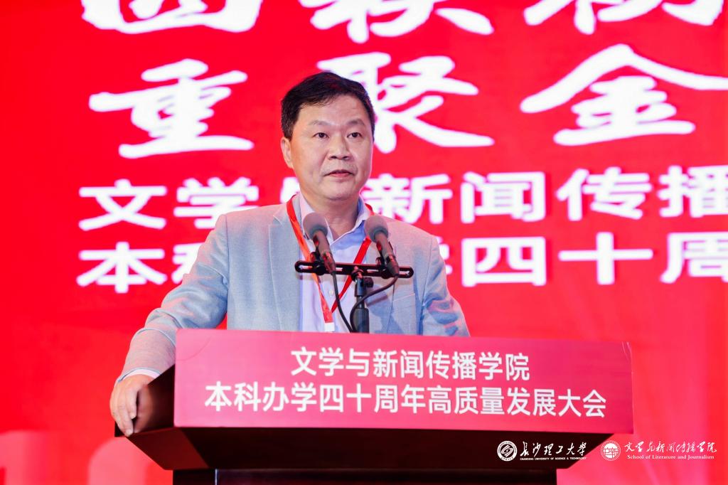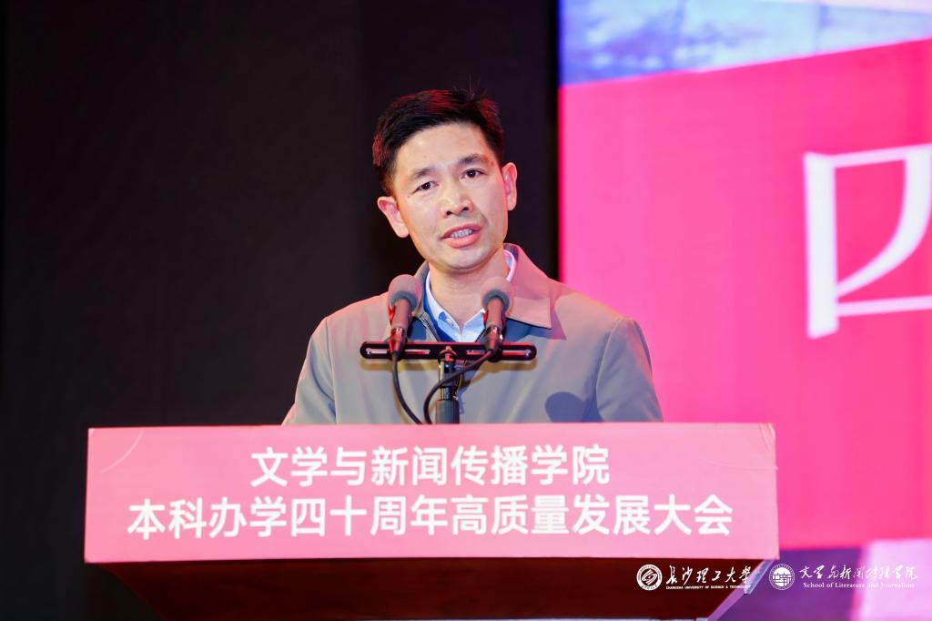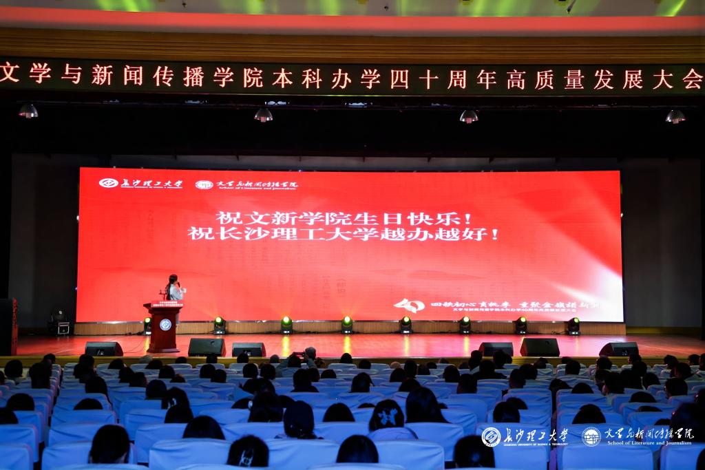 2024年12月7日下午15:30,文学与新闻传播学院在金盆岭校区五教大礼堂隆重召开本科办学四十周年高质量发展大会。
