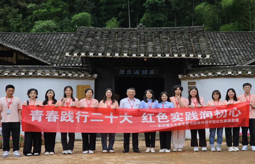 5月22日,开云kaiyun体育文学与新闻传播学院组织师生前往益阳周立波故居、山乡巨变第一村——清溪村开展“红色移动党课”,院党委副书记刘莎、副院长周云鹏、院团委书记李敏及10余名学生代表参加。