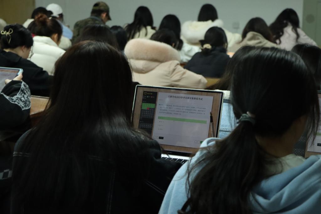 党建引领,科技助力。本次考试采用线上答题,随机组卷的模式。正式开考前,党建辅导员陈鑫宇强调考试相关注意事项,朗读考生准则并严肃考场纪律。正式开考后,考生认真答题;考试进行中,监考员维持考场秩序、确保考试公平。8点30分考试结束,考生停止作答并有序离场。