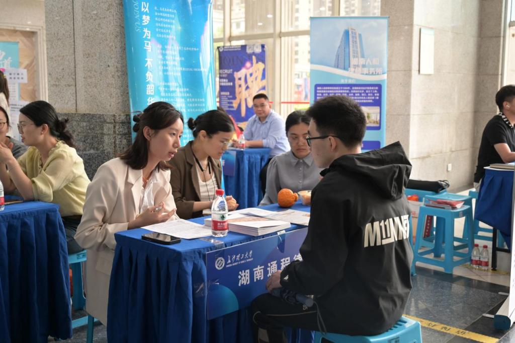 现场招聘会汇聚了美团(北京三快在线科技有限公司)、北京猿辅导线上学科培训学校、湖南广播电视台娱乐频道、上海邻跑汽车服务有限公司、湖南鸿乾律师事务所等在内的60家优质企业参与。本次招聘会聚焦文科类专业,涵盖教育、互联网、金融、法律服务等多个领域,汇聚各知名企业等优质用人单位,为毕业生提供精准、多元的就业选择。