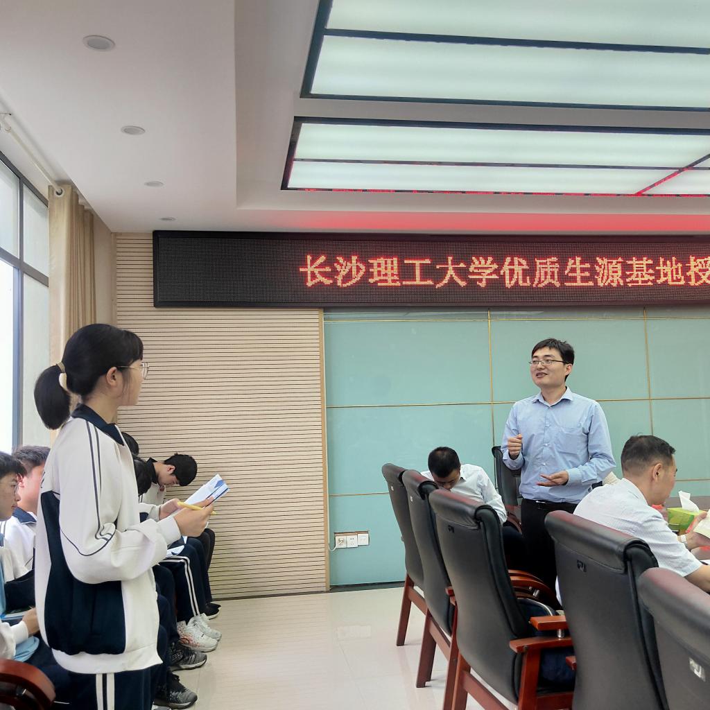 伍接朝介绍了学校本科人才培养的优势特色、招生就业等情况,希望双方共同在迎接湖南新高考改革过程中,利用地域优势,加强资源共享和联络互动,学校派出更多教授走进高中开展通识讲堂和志愿填报活动,欢迎高中组织师生走进长沙理工参观交流。高中校长表达了希望长沙理工携手基地学校、帮带基础教育,提升学校在湘西北农村高中的窗口和品牌地位。