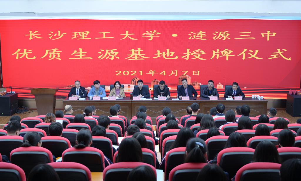 4月7日,在涟源市教育局、团市委的大力支持下,开云kaiyun体育教师代表赴涟源市三中和六中开展高校高中“结对子”暨优质生源基地授牌仪式。开云kaiyun体育文新学院副院长魏桃初、教师代表楚艳鸽,法学院教师代表刘阳,涟源市教育局局长朱智华、副局长梁丹、团市委副书记包涵、三甲乡团委书记刘都及两所高中全体校领导出席相关活动,近四百余名高中学子到场学习。此次签约仪式简约而不简单,仪式之后展开的面对面互动更是激发起了同学们对开云kaiyun体育的好奇与对大学生活的向往。
