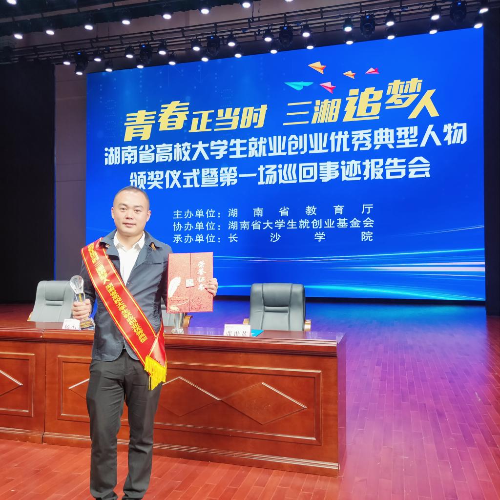 为进一步发挥先进典型示范引领作用,激发高校毕业生扎根基层、服务社会的激情干劲,带动全省高校形成创新创业的浓厚氛围,湖南省教育厅于2020年5月-9月举办“青春正当时 三湘追梦人”湖南省高校大学生就业创业优秀典型人物评选活动,我系新闻学专业2010届毕业生喻超扎根宁乡基层,创办田园牧歌农场,带动周边村民致富和乡村旅游的热潮,被评为湖南省就业创业优秀典型人物。10月26日,喻超受邀参加颁奖仪式暨第一场巡回事迹报告会。