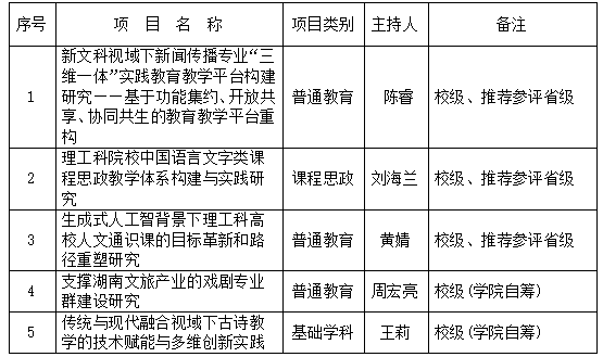 根据学校《关于开展2025年教学改革研究项目实施工作的通知》和湖南省教育厅《关于开展2025年湖南省普通高等学校教学改革研究项目立项和结题工作的通知》等文件精神,我院组织了2025年教学改革研究项目的立项评审工作。现将评审结论公示如下: