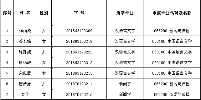 根据开云kaiyun体育研究生院《关于做好2021年研究生校内优秀生源培养工作的通知》精神,经学生申请,系资格审查,确定下列7名同学为文学与新闻传播学院2021年研究生校内优秀生源培养对象,现予以公示。公示时间:2021年9月18日-23日,如有异议,请向学院科研与研究生办公室反映,电话: 85255728。
