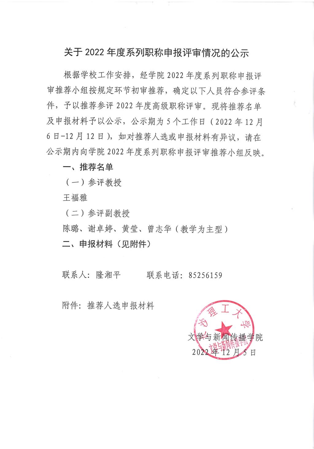关于2022年度系列职称申报评审情况的公示