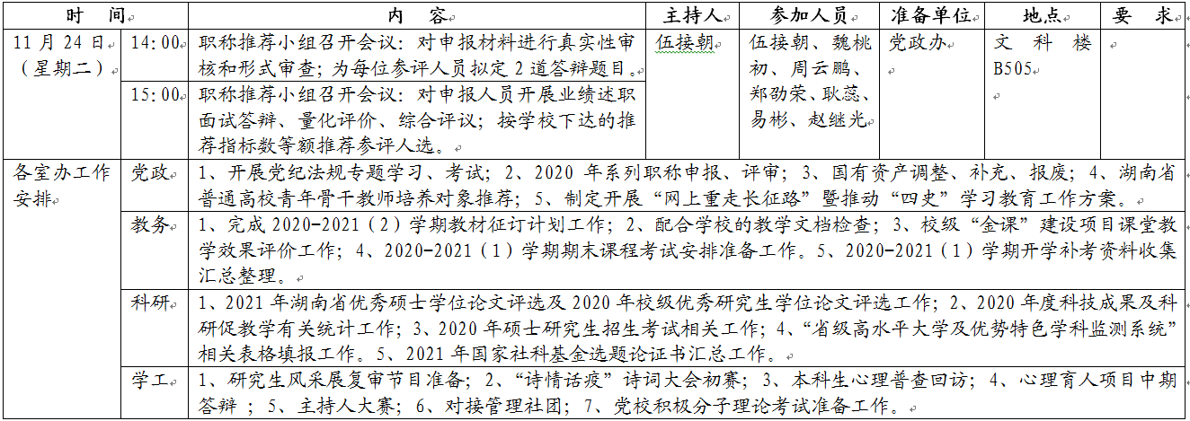 文新系2020-2021学年度第一学期第十二周工作安排表