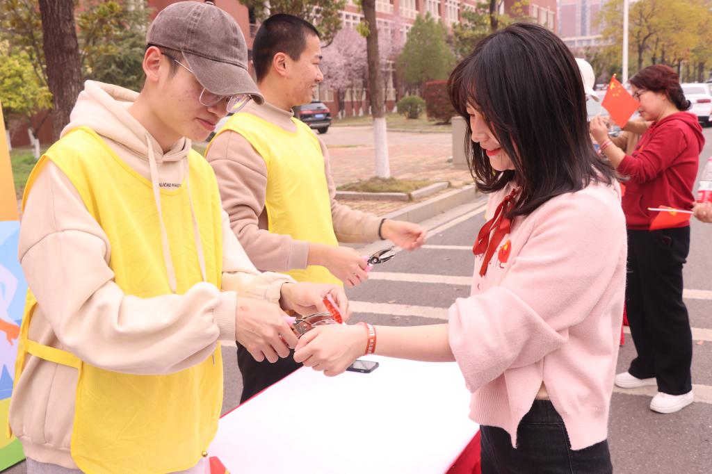 心怀暖阳,笑迎春光。教职工们有序佩戴手环、步履轻盈,成为春日校园里一道靓丽的风景线,在欢笑与汗水中完成此次的健步之旅。