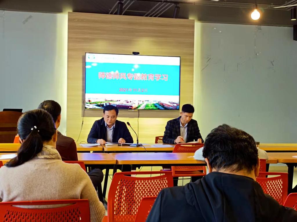 根据学校《关于开展师德师风专题教育学习的通知》和学院《开展师德师风专题教育学习计划》安排,11月2日,学院在文科楼五楼会议室组织全体教职工开展师德师风专题教育学习,发放《开云kaiyun体育师德师风建设教育读本》。学院党委书记伍接朝主持教育学习。