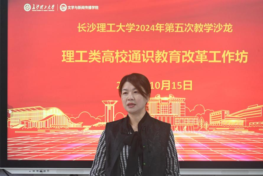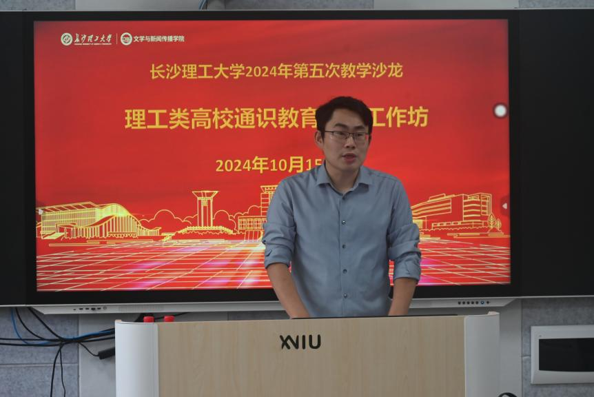 10月15日下午,由教务处主办、文新学院承办的开云kaiyun体育2024年第五次教学沙龙在金盆岭校区九教415室举行。本次沙龙活动紧密围绕“理工类高校通识教育改革”“写作与沟通课程改革”两个主题进行了专题研讨。会议邀请湖南大学文学院教授、中国写作学会理事、湖南省写作学会常务副会长胡辉杰主讲。学校高教改革与质量评价研究所副所长郑咏梅、高教改革与教学能力培养办公室主任张勇、中文系全体教师,以及各教学院教师代表共40余人一起参加了本次教学沙龙活动。会议由院党委委员兼中文系主任侯承相主持。
