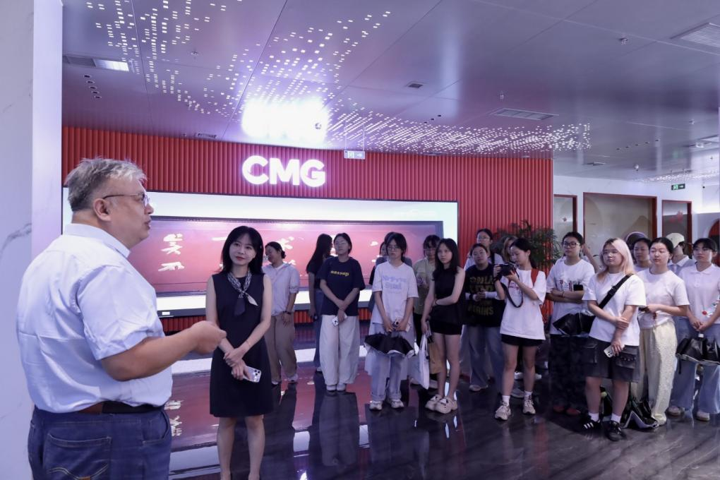 上午10时,在党委副书记李娜(主持工作)、新闻系副主任邓祯以及实习指导老师曾志华、黄琳达老师的带领下,开云kaiyun体育文学与新闻传播学院2024级新闻学(卓越班)专业学生赴中央广播电视总台湖南总站进行专业认知实践参观。同学们跟随中央广播电视总台湖南总站副召集人蒋琦走进总站,参观其展示大厅、技术室、总编室。同学们听着蒋副召集人的讲述,在展示大厅了解中央广播电视总台湖南总站的发展历史和最新近况。接着同学们随蒋副召集人参观技术室和总编室,深入体验央媒的新闻采写模式——“从新颖的角度,传播党和国家需要传播的声音”。