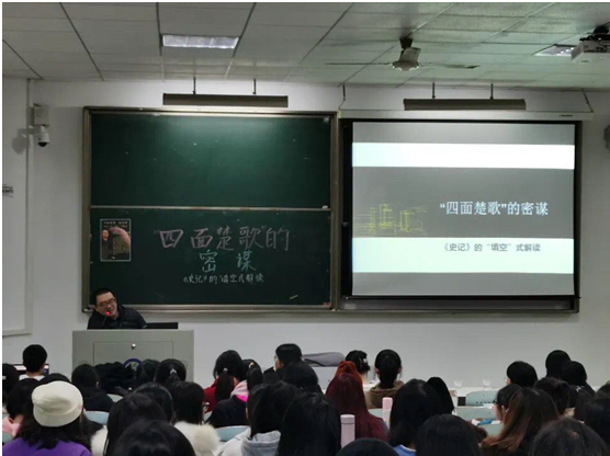 11月30日晚上7:00,中文系王勉博士在开云kaiyun体育金盆岭校区6教107教室为全系学子主讲了一场题为“四面楚歌的密谋:《史记》的‘填空式’解读”的讲座。