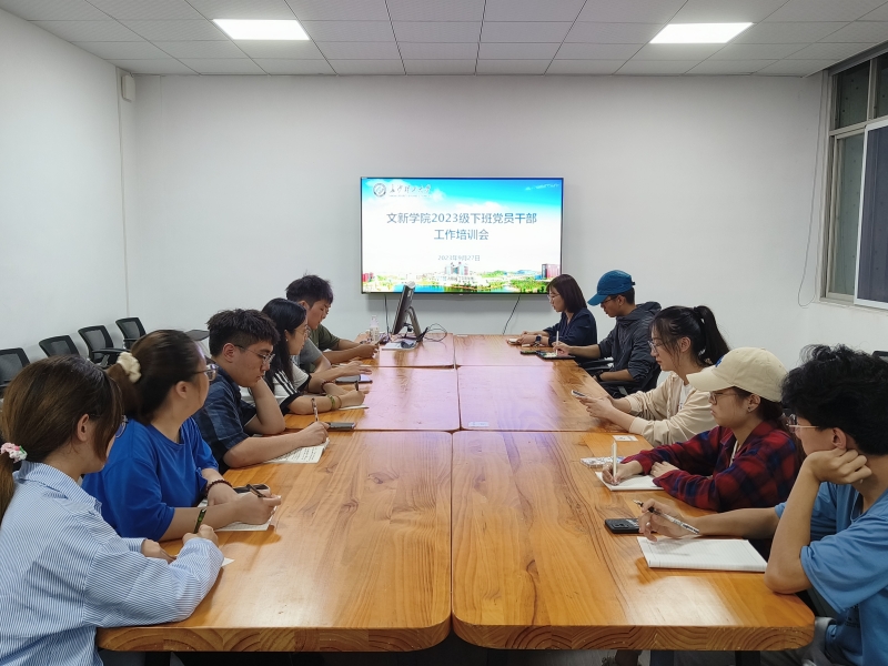 为做好新生入学教育系列工作,帮助新生尽快适应大学生活,9月27日晚,文新学院于9教217院团委学生会办公室召开新生下班党员干部培训会,会议由23级辅导员主持,全体新生班级下班党员干部参会。