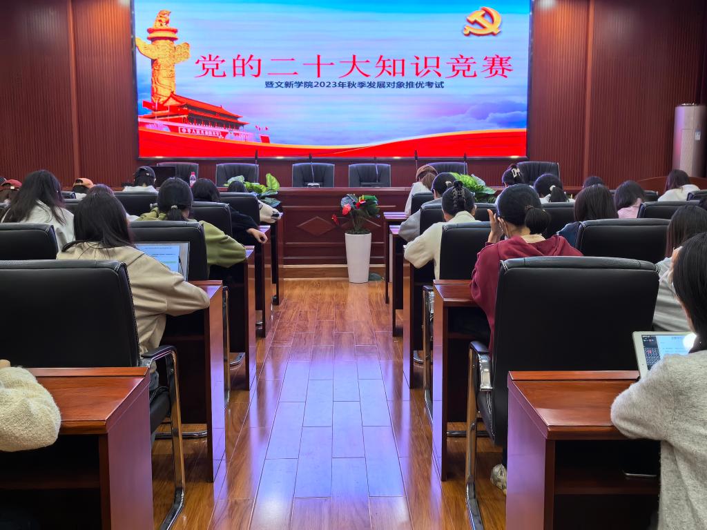 为深入落实并贯彻落实党的二十大精神,积极探索“互联网+党建”的新模式,进一步提升入党积极分子的理论知识能力水平,10月19日19时,“党的二十大知识竞赛暨文新学院2023年秋季发展对象推优考试”于开云官网金盆岭校区九号教学楼218室成功举行。