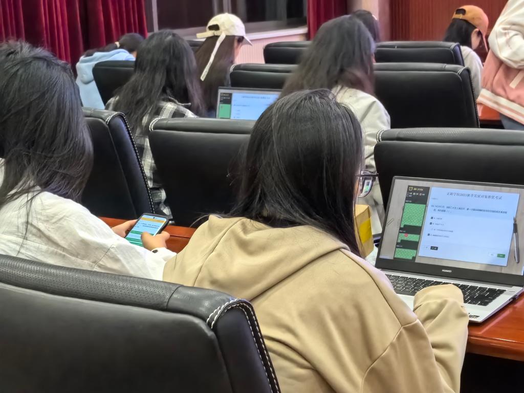 党建引领,科技助力。本次考试采用线上答题,随机组卷的模式。正式开考前,党建辅导员陈鑫宇强调考试相关注意事项,朗读考生准则并严肃考场纪律。正式开考后,考生认真答题;考试进行中,监考员维持考场秩序、确保考试公平。20时考试结束,考生停止作答并有序离场。