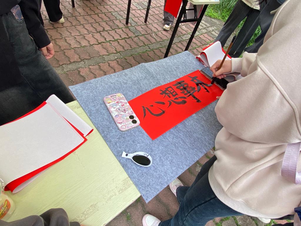 活动现场,同学们围坐在桌子旁,手持毛笔,蘸满墨汁,在宣纸上书写着一副副精美的对联。他们挥毫泼墨,展现书法风采。每一笔、每一划都凝聚着同学们的心血和智慧,也展现着他们对传统文化的热爱和追求。