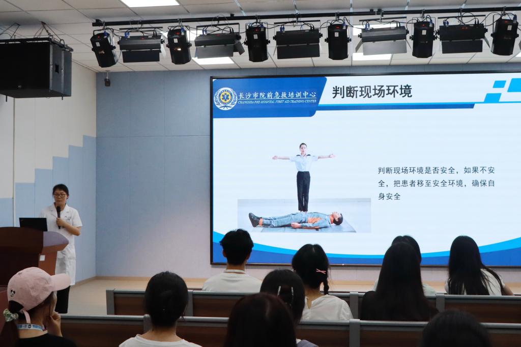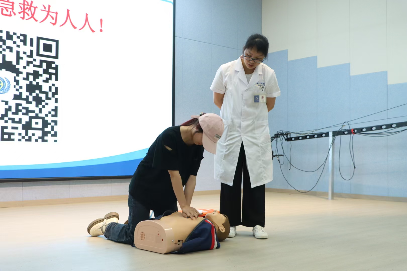 为更好普及急救知识与技能,增强学生安全意识与自救互救能力,5月19日下午4点,开云kaiyun体育文新学院联合金盆岭三真街道社区卫生服务中心在金盆岭校区9号教学楼113室开展急救知识与技能普及培训,此次培训由资深医师肖罗英主讲。主要内容包括心肺复苏、AED使用、海姆立克急救法等常见意外伤害的处理办法。