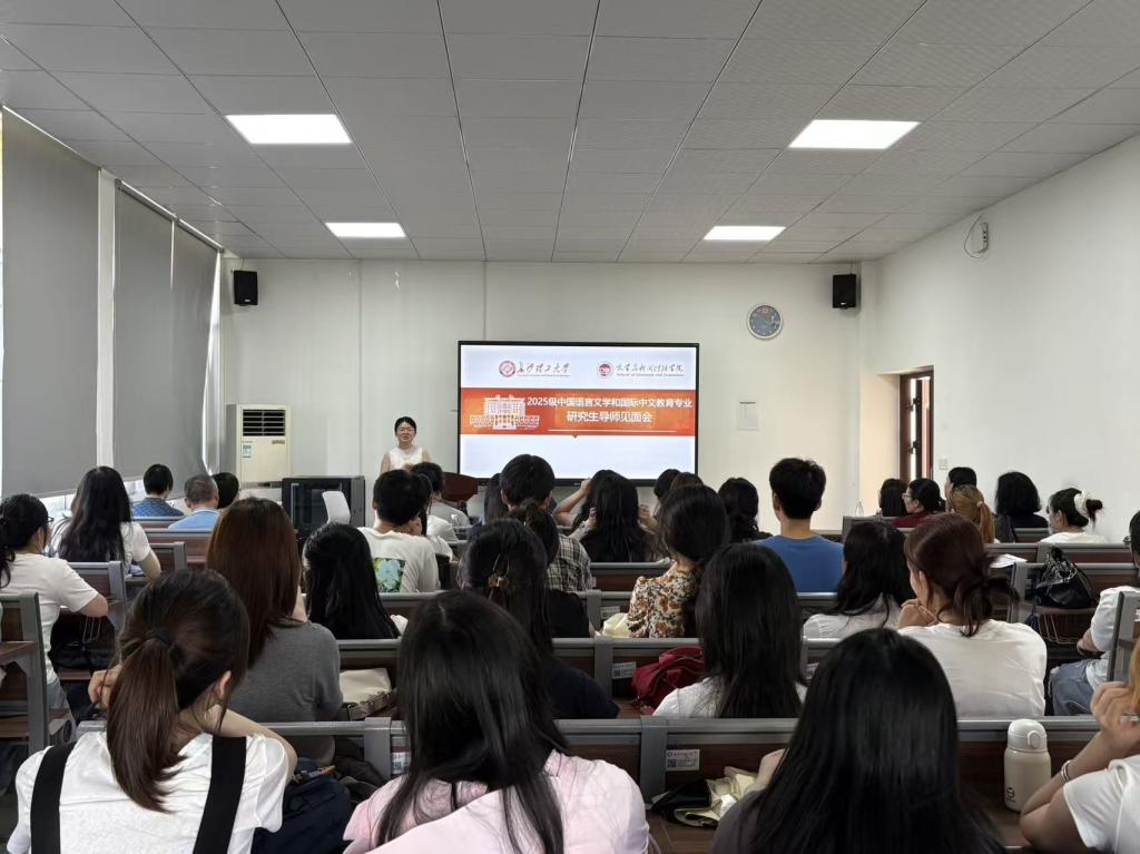 9月16日下午,开云kaiyun体育文学与新闻传播学院中国语言文学与国际中文教育专业2025级硕士研究生导师见面与双选会在金盆岭校区九教417成功举行,文学与新闻传播学院中国语言文学与国际中文教育专业全体研究生导师及研究生新生参与了此次会议,文学与新闻传播学院党委委员兼中文系主任黄婧主持此次会议。
