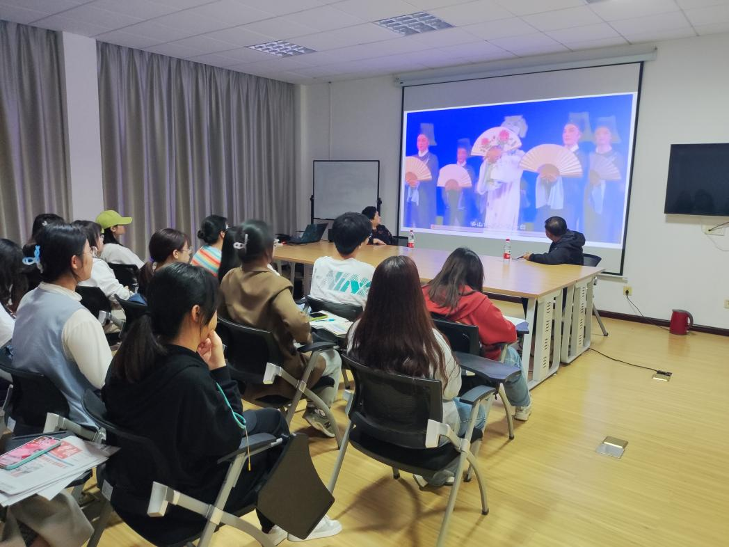 活动期间,两位老师与同学们共同欣赏了越剧表演《梁山伯与祝英台》,并向同学们普及了戏剧学习需要具备的能力,为同学们答疑解惑。金莉希望将现代传媒手段与传统戏剧宣传相结合,通过本次活动充分发掘和培养戏剧文化传承复合型人才,引起了同学们的共鸣。