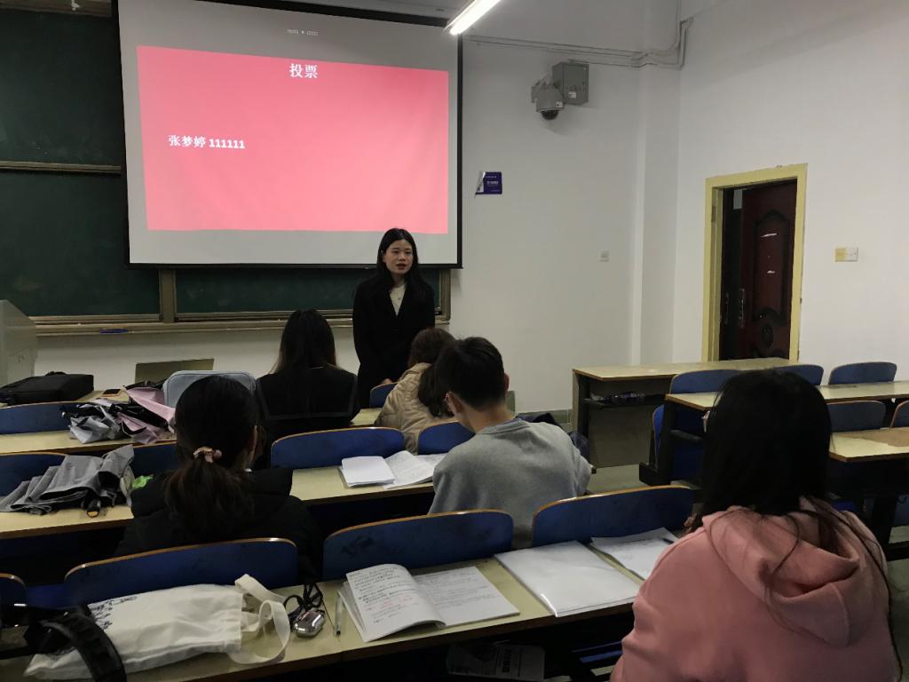 会议伊始,支部副书记通报本次大会到会情况,党支部实到会正式党员6名,因事请假2名。会议主要围绕吸收新成员张梦婷同志为中共预备党员展开讨论。伴随着国歌声的响起,张梦婷同志上台进行了入党志愿宣讲。她从入党志愿、对党认识、入党动机、个人履历、现实表现等几个方面展开了讲述。她认为自己作为一名新闻专业的学生,本身就应该具备较高的政治素养,理应反映人民呼声,她表示自己会将所学投入于工作之中,在今后的学习和工作中去发光发热,为人民群众贡献属于自己的力量。