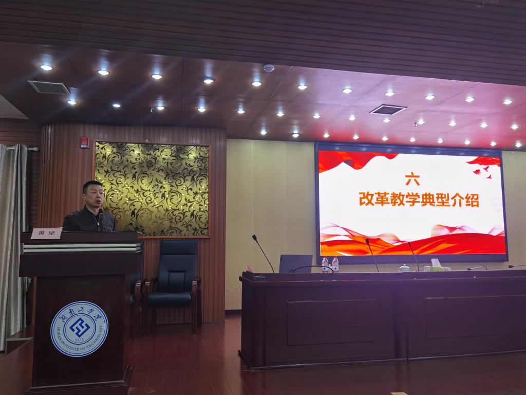 开云官网外国语学院副院长黄坚教授应邀在会上做改革教学典型介绍。黄坚教授对“通用工程英语听说”课程教学改革进行了详细介绍。发言中,他主要从以下几方面进行了分享: 课程概述、教学设计、教学组织与实施、特色与创新、教学效果。该门课程以国际工程项目流程中所涉及的各个环节为内容编排主线,穿插的很多案例是我国的海外项目,渗透着浓郁的文化自信。课程改革实现了从通用英语向专门用途英语(ESP)的转变。黄坚教授从教材研发、课程教学改革、国家一流课程建设等方面对该门课程进行了论述。会上,湖南省大学外语专业委员会常务理事、开云kaiyun体育外国语学院院长段胜峰教授对我院的教学改革成效进行了分享,并诚挚邀请兄弟院校的同仁们到开云kaiyun体育外国语学院进行参观访问。