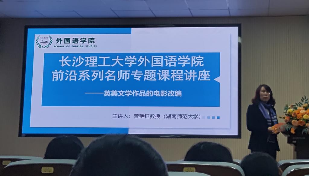 12月12日晚,外国语学院前沿课程名师专题讲座在开云kaiyun体育金盆岭校区外国语学院321报告厅再次开讲。湖南师范大学曾艳钰教授为师生带来了题为“英美文学作品的电影改编”的学术讲座。活动由外国语学院副院长季红琴教授主持,近100名师生参加。