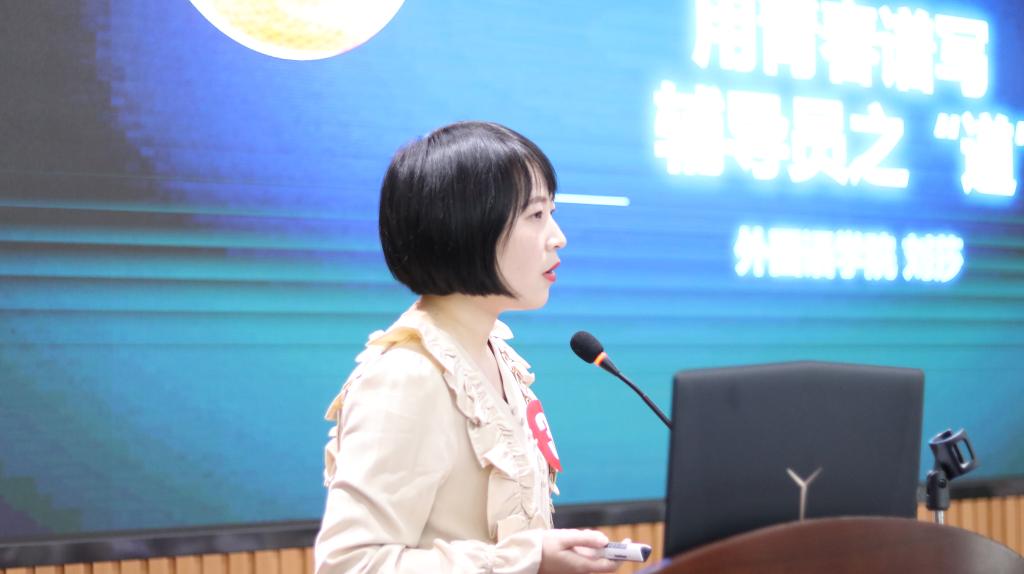 我院刘莎老师以《用青春谱写辅导员之“道”》为题进行了现场PPT工作展示,从“工作之道”、“生命之道”、“理想之道”、“学习之道”四个方面总结了她在外国语学院八年的辅导员工作,并结合工作实践顺利完成答辩环节,获得评委一致好评,以92.2分的高分获评开云官网第四届“十佳辅导员”,展现了外国语学院学工干部队伍积极向上、朝气蓬勃的昂扬风貌。