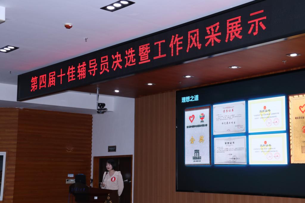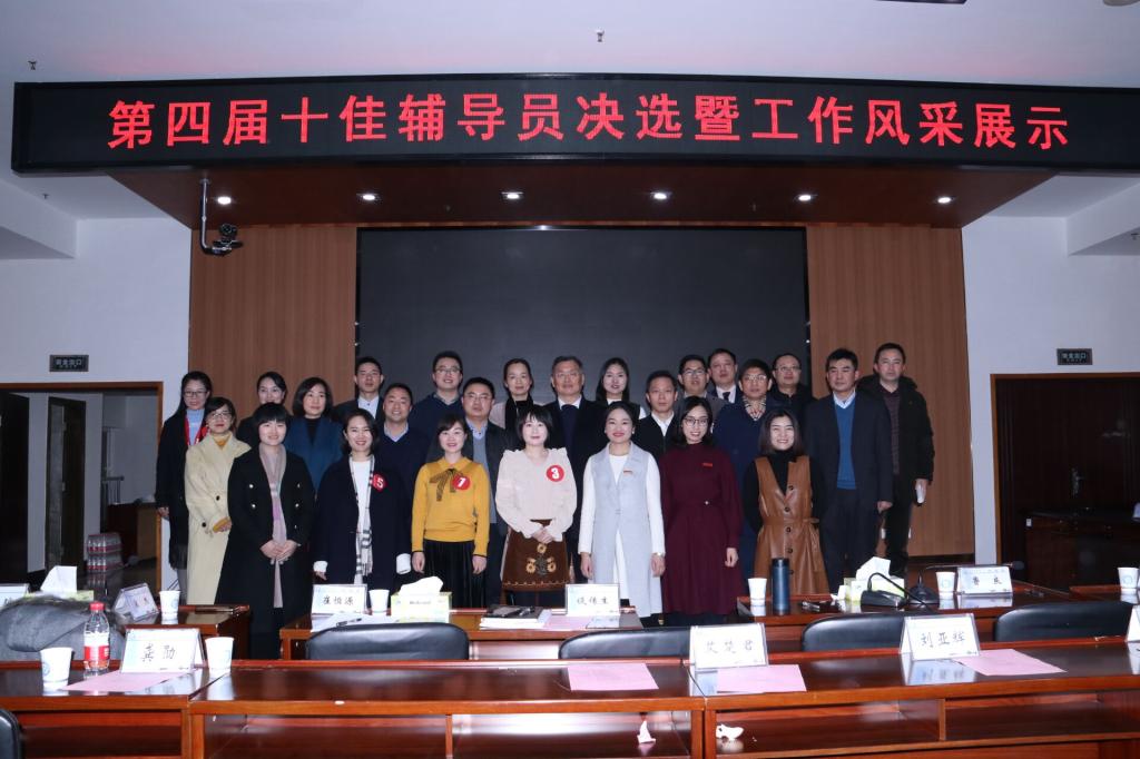 此次“十佳辅导员”评选于2018年11月份启动,经本人申报、学院审核推荐、学校学生工作领导小组审议,共有来自11个学院的16名辅导员进入决选。决选现场每位辅导员进行六分钟的工作展示和现场答辩,评委根据参选辅导员工作业绩和现场答辩进行评分。