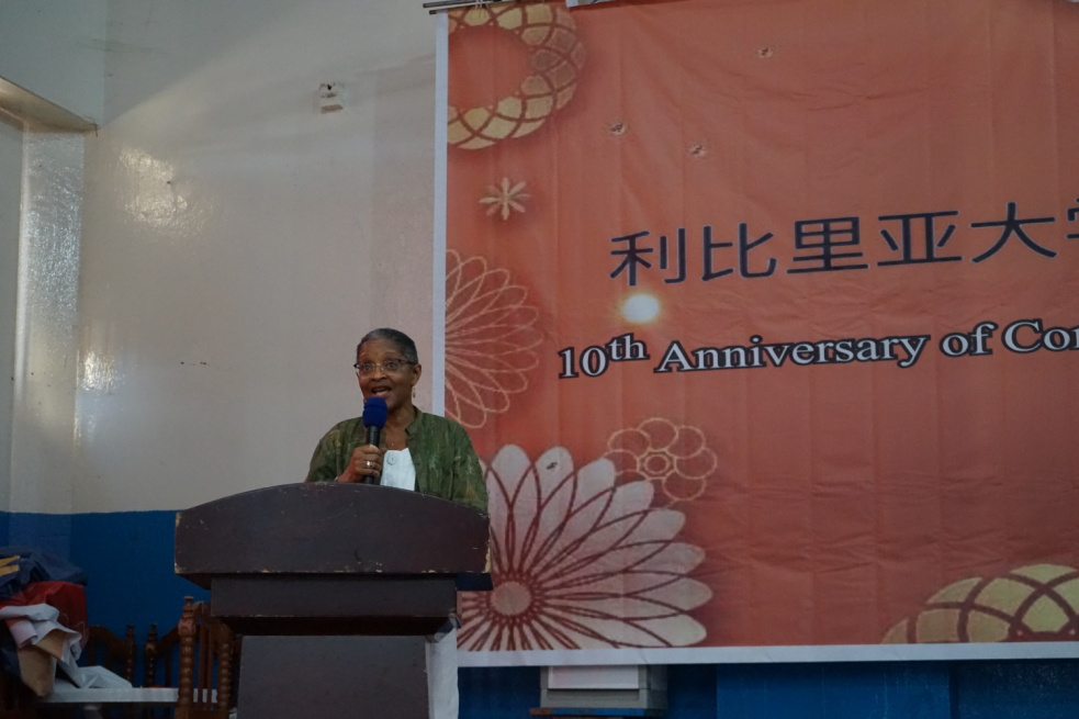当地时间5月28日,利大孔院十周年庆典在利比里亚大学老校区礼堂圆满落下帷幕,数百余人欢聚一堂,共同庆祝利大孔院迎来了自己的第一个“十年”。出席此次活动的有中国驻利比里亚使馆大使付吉军、使馆政治处主任张磊、利比里亚大学校长奥菲莉亚·伊内兹·威克斯博士、副校长威廉·艾伦博士、副校长吉贝·吉贝教授、副校长维阿迪·卜勒教授、副校长乔纳森·泰勒博士、副校长诺里斯·图为、副校长卡苏蛙·杰克逊、副校长斯蒂芬·主贝教授、利大各学院院长、利比里亚政府机构代表、中国驻利比里亚医疗队、各大援利机构、全体中资企业的代表、华人华侨代表、利大孔院各教学点负责人以及利比里亚大学孔子学院师生出席了此次活动。利比里亚各大新闻媒体和广播电台对此次活动进行了报道,OK电台对庆典活动进行了现场直播。