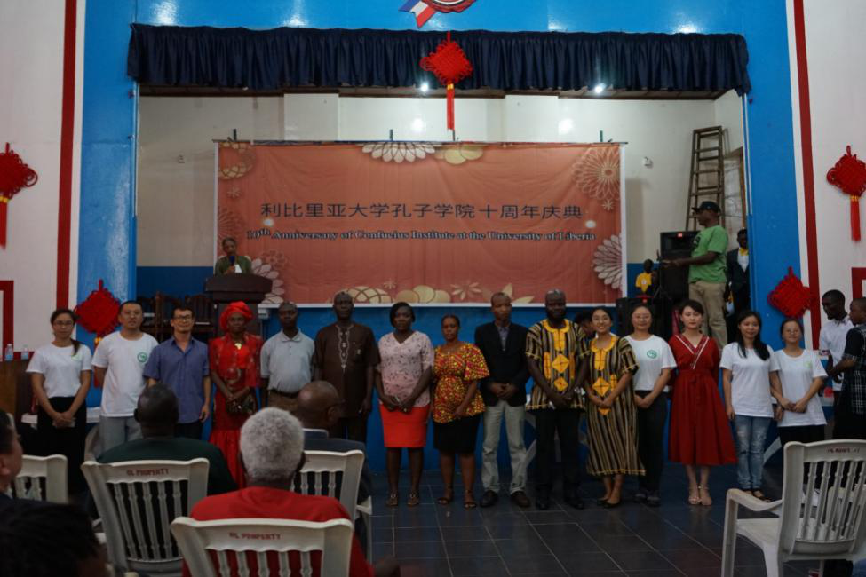 十年栉风沐雨,十年春华秋实,利比里亚大学孔子学院已经成为利比里亚年轻学子了解中国的一扇窗口,同时也推动着中利两国在文化,人文,教育,经济,科技等领域的交流与合作。十年既是一个节点也是一个开端,为庆祝利大孔院走过的这十年,各个教学点的学生也为现场所有来宾带来了精彩纷呈的节目,点燃了全场观众的热情。不论是小朋友欢脱的《海草舞》,还是大学生们身韵优雅的《夜上海》都获得了全场热烈的掌声,由圣宇中学学生带来的杂技表演更是赢得全场观众的阵阵欢呼。利大孔院师生表演的诗朗诵《少年世界说》和王国小学小朋友诵演的儒家经典《三字经》,都让现场观众感受到了汉语语言的魅力。