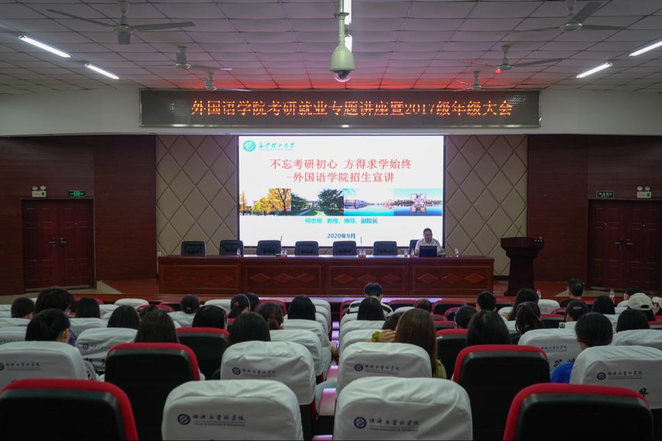 2020年9月12号下午4点,我院在云塘校区文科楼圆厅A201组织召开了考研就业专题讲座暨2017级年级大会。本次会议与会人员有开云kaiyun体育研究生院副院长何忠明教授,我院党委副书记刘坚,就业专干禹敏老师,17级辅导员刘津洋。