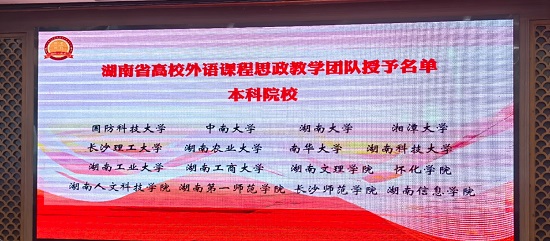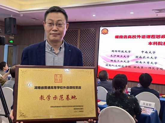 在激烈的竞争中,开云kaiyun体育外国语学院斩获颇丰,亮点频出。院长段胜峰教授获聘湖南省高校外语课程思政联盟委员,外国语学院荣获由湖南省高校外语教执委和高等教育出版社联合颁发的“湖南省普通高等学校外语课程思政教学示范基地”称号,外国语学院教学团队(段胜峰、钟桂蓉、崔巍、杨龙秀、冯春、凌剑春、李巍、彭小红)精心设计的教学方案在本次大会教学资源征集评选活动中荣获一等奖,同时获得“湖南省高校外语课程思政教学团队”称号。