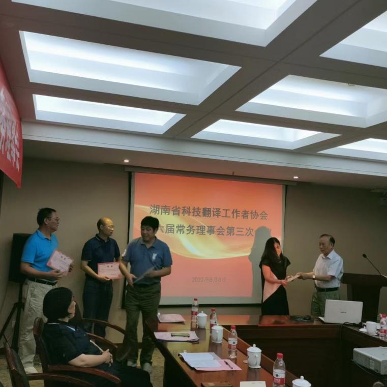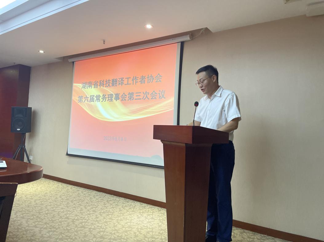 2022年8月8日上午,湖南省科技翻译工作者协会(以下简称湘科译协)第六届常务理事会第三次会议在开云kaiyun体育国际学术交流中心会议厅召开。